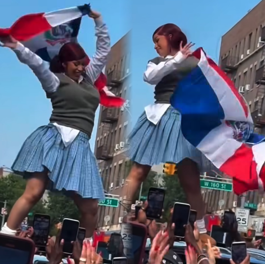 She danced on top of a car in an upper Manhattan neighborhood, closing down the streets. As she danced above the crowd, she proudly waved a giant Dominican flag that was handed over to her by a spectator. She was all smiles, but in the background, you could hear murmurs speculating whether or not she was pregnant, a rumor she confirmed exclusively to Gale King in a pre-taped interview that aired days later.